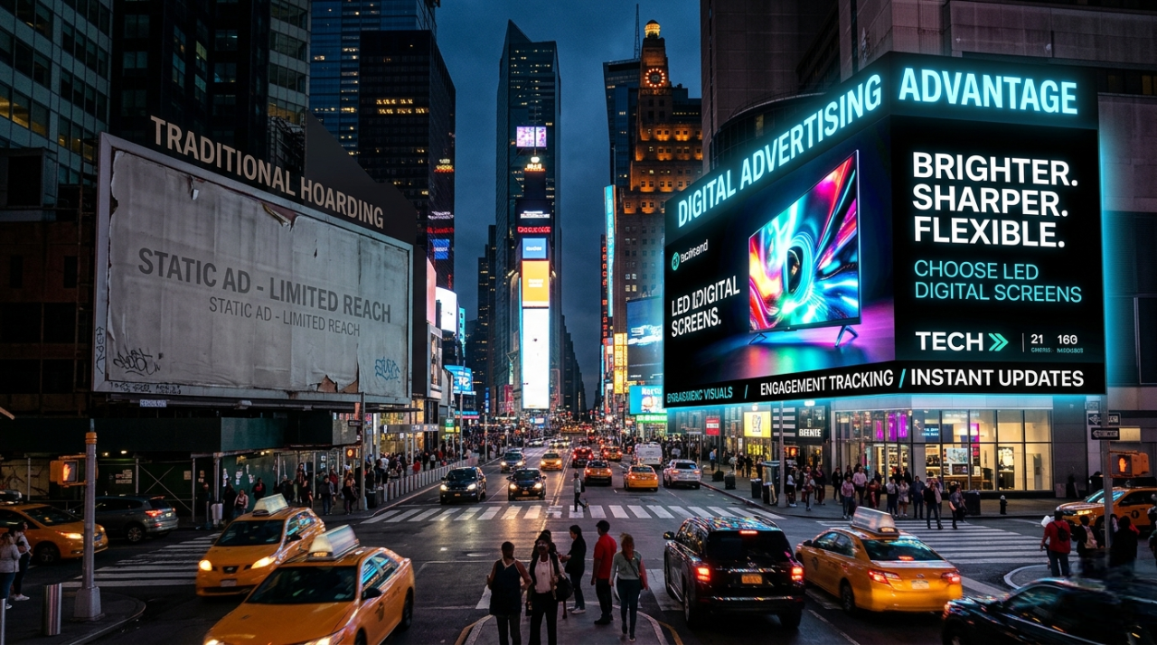 In today’s rapidly changing advertising landscape, outdoor LED screens have become a powerful medium for brands aiming to stay recognized, persuasive and significant. With unequaled brightness, dynamic content capacity and enduring cost efficiency, led screen advertising offers businesses the ability to draw attention in even the most crowded places. Whether installed on highways or rooftops, these screens ascertain continuous interaction and robust brand recall. Moreover, the flexibility to update campaigns instantly makes LED digital screen advertising a future-ready solution for modern marketing strategies. By investing in the right screen type, location, and content strategy, businesses can transform ordinary spaces into high-impact communication platforms that deliver measurable results and sustained visibility throughout the year.